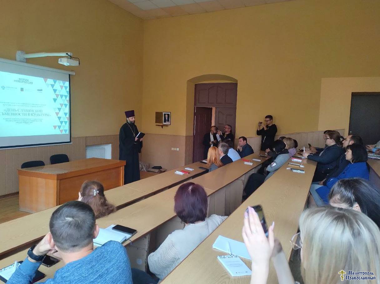 ♥️В приветственном слове отец Сергий передал всем собиравшимся благословение епископа Бердянского и Приморского Петра, а также пожелание участникам плодотворной работы и вдохновения от совместного общения. Отец Сергий процитировал слова Святейшего Патриарха Московского и всея Руси Кирилла, который сказал: «Православие является культурообразующим фактором для всего нашего народа. Нельзя вырвать этот стержень. Без истории Православия нет истории России».