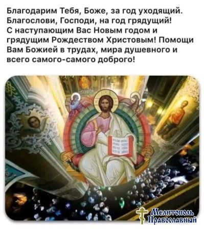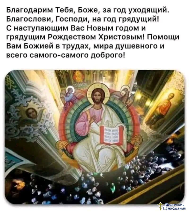🙏Молитвенно желаем, чтобы наступающий год стал временем духовного возрастания, мира и согласия, укрепления семей, здоровья телесного и душевного, терпения и помощи Божией во всех благих начинаниях. Пусть в каждом доме царят любовь, взаимопонимание и радость о Господе.
