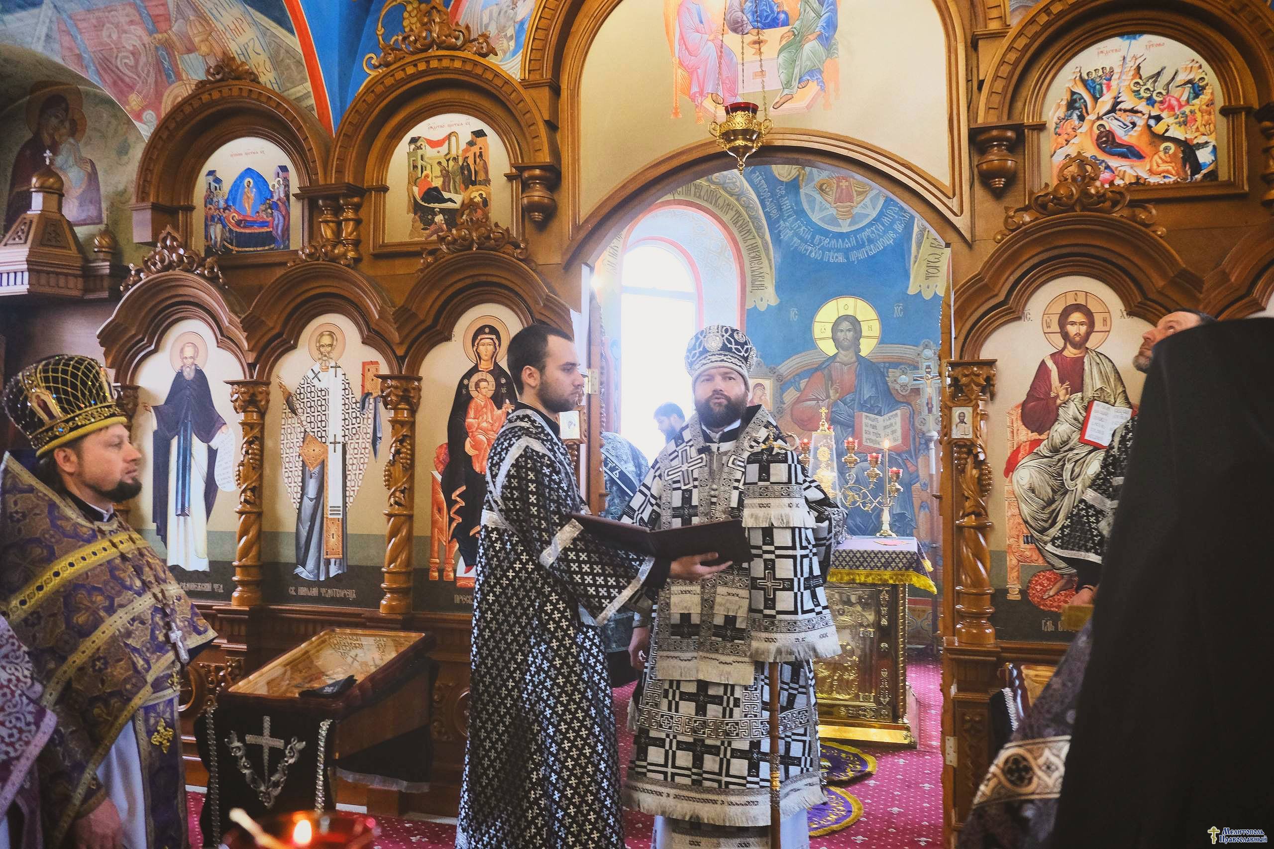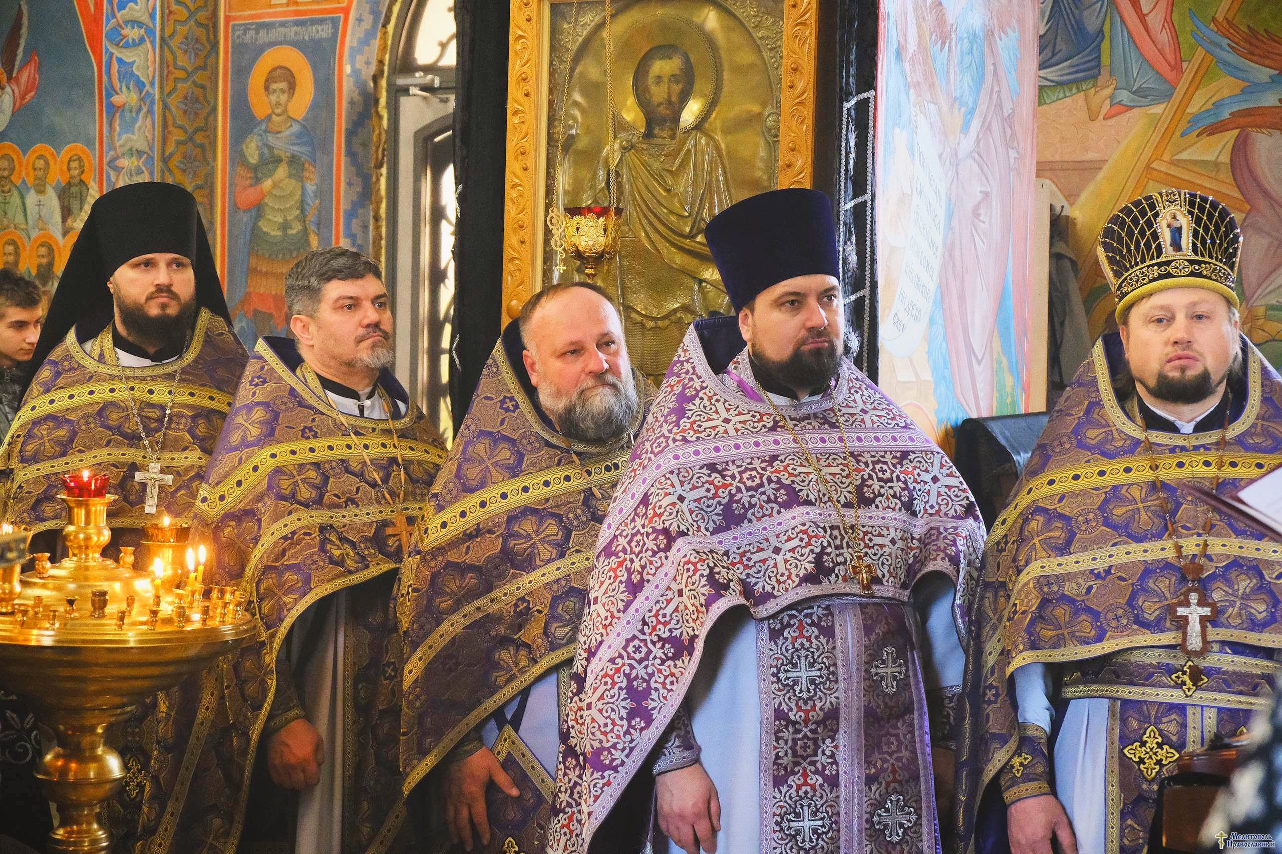 благочинный церквей г. Мелитополь архимандрит Иоанн ( Прокопенко), настоятель собора протоиерей Александр Виниченко, протодиакон Виталий Гук и духовенство благочиния.