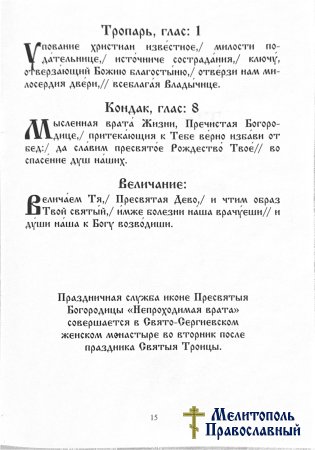 Сайт Мелитопольского Благочиния » Публикации » Акафист Пресвятой Богородице пред иконой "НЕПРОХОДИМАЯ ВРАТА" (НЕПРОХОДИМАЯ ДВЕРЬ)
